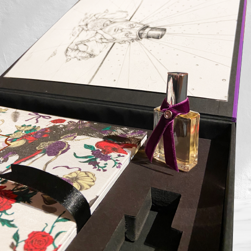 Incluye: litografía de la artista Paola Celada, con el perfume de Julio Galán y el libro de lujo